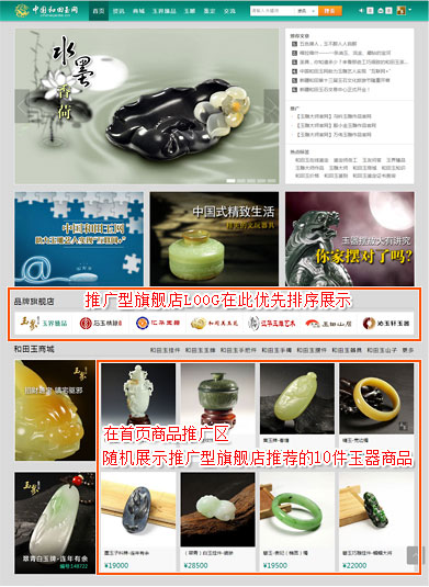可獲得和田玉網(wǎng)首頁、商城首頁、商城商品列表頁的廣告推廣資源,用以展示品牌logo及商品,增加品牌及商品曝光量,提高流量轉(zhuǎn)化,促進(jìn)交易。 |