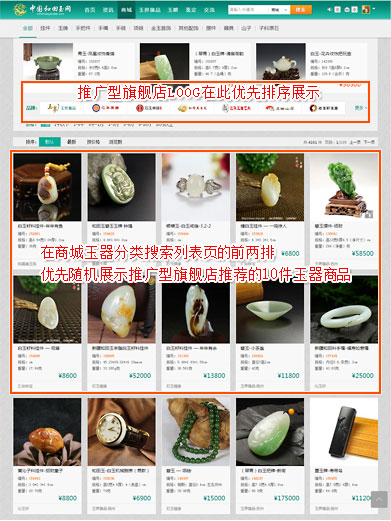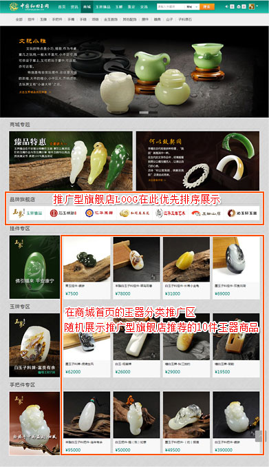 ● 旗艦店發(fā)布的商品,如符合和田玉網(wǎng)《和田玉商城玉器信息發(fā)布規(guī)范》,將會在商城頻道的商品列表頁展示推廣; ● 品牌旗艦店的店鋪信息鏈接將會顯示在和田玉網(wǎng)首頁。 |