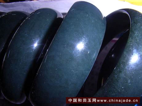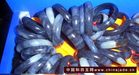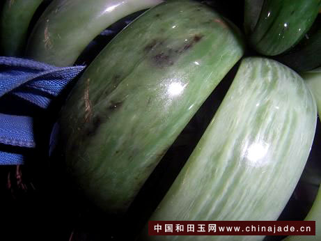 這樣的鐲子我第一次見到——青海煙青常見,但是帶這么多達到脂白玉的確實稀有??!我當即興奮起來,開始耐心侃價??!