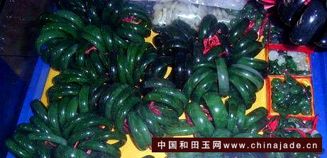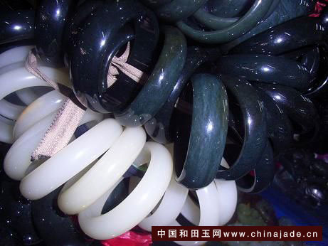 我又跑到華凌市場,希望可以淘到幾個鐲子。這里的鐲子基本都是扎堆賣通貨,講價的余地不是很大,但是“拔尖”還是很撿漏的采購方式。像圖中的這些鐲子,便宜!青海料的,猛一看都不錯,但是仔細挑選,很難挑出毛病小的。這里光線不好,在這里購物一定要自帶手電。