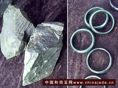 一些很次的鐲子。條紋鐲子就是這種料子開的,應該屬于石頭,比較時髦的說法應該叫“山寨版和田玉”。