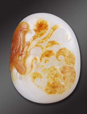 王金忠擅長花鳥、人物的雕刻,他的作品大多選擇帶皮色的和田子玉,通過對皮色的巧妙處理和運(yùn)用,既體現(xiàn)出了材質(zhì)本身的特質(zhì),也讓作品煥發(fā)出了奪目的光彩。