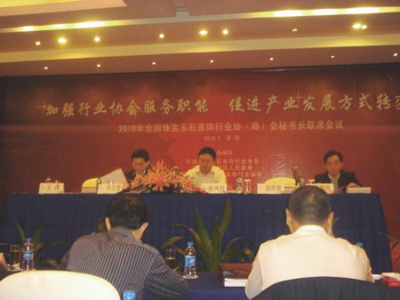 2010年3月4日,中國珠寶玉石首飾行業會(簡稱中寶協)在深圳召開了全國珠寶玉石首飾行業協(商)會秘書長聯席會議,會議主題為“加強行業協會服務職能 促進產業發展方式轉變”。100多名會長、秘書長出席會議。