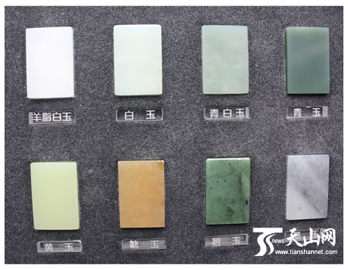 6月3日,天山網記者在自治區產品質量監督檢驗研究院下屬的新疆和田玉產品質量監督檢驗中心看到了科研人員推出的實物標準樣品。全套實物標準樣品共有8件,分別為羊脂白玉、白玉、青白玉、青玉、黃玉、糖玉、碧玉、墨玉。每件玉器樣品被切割成長方體,大約有一個成人的大姆指大。