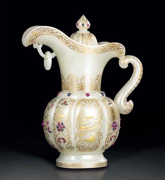 白玉錯金嵌寶西番壺——中國工藝美術大師馬進貴作品
