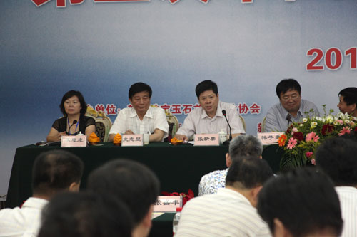 8月7日上午,由新疆寶協主辦的第三次中國和田玉研討會在烏魯木齊隆重召開。來自全國各地的玉石研究專家、學者、玉雕大師、珠寶玉石企業負責人等共150余人參加了會議。烏魯木齊市副市長李光輝、自治區文化廳黨組書記韓子勇、自治區新聞出版局副局長張新泰、新疆職業大學黨委書記史志顯等領導出席了會議。