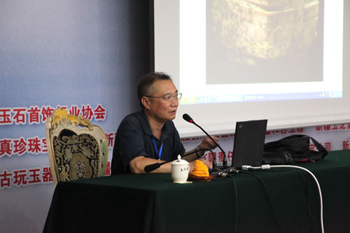 故宮博物院研究員張廣文在研討會做報告,講解中國玉文化發展歷程及明清玉材料