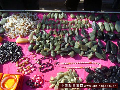 看到這些東西先不要急于說出“精品”二字,其實就是一些岫玉(黃色的),石頭(黑色的)和山料(白色的),當然,青色的有真戈壁。