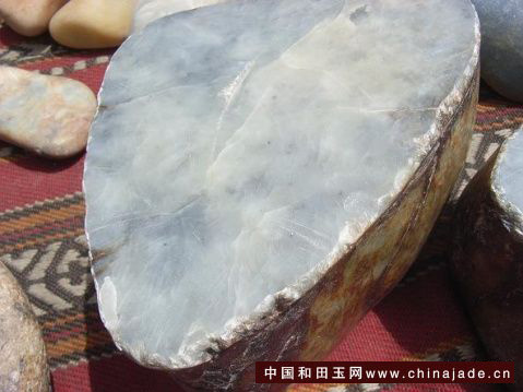 漿(礓)如果從理論上挖掘,有很多不一樣的地方,主要是礦物組成和形成方式的不同。根據這些不同,往往能判斷料子的好壞。比如常說的”邊漿出好肉”,其實是指玉石成礦時,中酸性侵入巖(含鐵)向白云石大理巖(不含鐵)不斷侵入,靠近侵入巖處含鐵高,容易產生青玉;靠近白云石大理巖處鐵含量很少,出白玉,而且細膩。這里的”邊漿”,一般是玉體側的白云石大理巖部分。