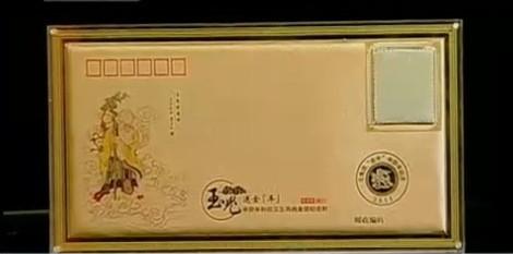 這個就是冒充中國郵政發行的“玉兔送金封”和田玉雕生肖郵票,大家千萬不要上當了。