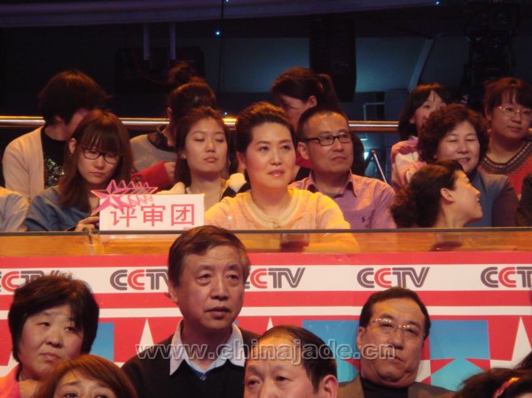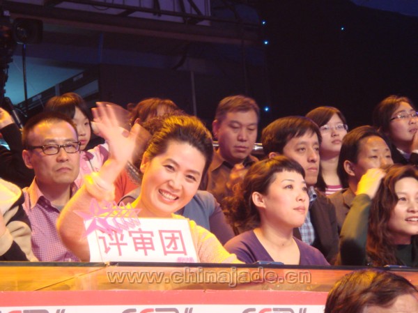 圖為:新疆和合玉器有限公司總經(jīng)理郭粹女士作為評(píng)審團(tuán)嘉賓在《星光大道》節(jié)目錄制現(xiàn)場(chǎng)