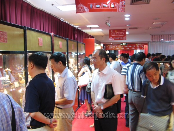 作為援疆工作的重要組成部分“2011上海喀什文化周新疆玉文化展”的舉辦,對(duì)宣傳新疆,推廣和弘揚(yáng)和田玉文化起到了積極的作用,和田玉作為新疆一張重量級(jí)的名片在本次活動(dòng)中成為亮點(diǎn)。上海市東方衛(wèi)視及各大媒體給予了積極的支持和全程報(bào)道,來自上海商界及收藏屆的客商數(shù)千人參觀的本次玉展,展會(huì)現(xiàn)場(chǎng)人員攢動(dòng),參觀客商絡(luò)繹不絕。前來洽談意向購(gòu)買的客商紛紛與參展大師及玉商談價(jià)格,新疆和田玉的收藏?zé)嵴谏钊肴诵摹9P者也同上海玉界大師同仁及客商進(jìn)行了面對(duì)面的交流,就和田玉的發(fā)展走向和收藏趨勢(shì)進(jìn)行了深入的探討。