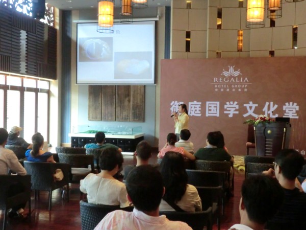 2011年9月17日,由南京御庭精品酒店傾情呈現的御庭國學文化堂系列講座之《和田玉鑒賞與投資》在古都南京順利落下了帷幕。講座齊聚和田玉專家張歐翔,尊敬的媒體、嘉賓與和田玉行業精英于湯山御庭酒店的谷吧,就中華民族的瑰寶和田玉進行了熱烈的文化交流。