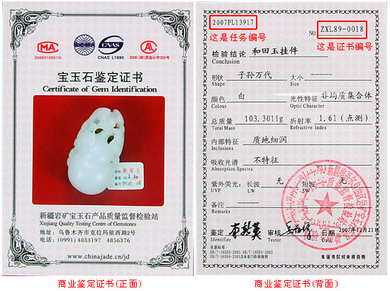 二、商業鑒定證書,相當于五寸照片大小,附有彩色照片,過塑;
