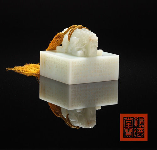 清乾隆六十年(1795年)白玉御題詩“太上皇帝”圓璽以1.61億元的成交價,刷新了御制玉璽和白玉拍賣世界紀錄。同場的清道光十一年(1831) 白玉御制文“慎德堂寶”交龍鈕寶璽以9085萬元成交,清乾隆五十四年(1789年)白玉龍鈕“八征耄念之寶”“嚮用五福”寶璽 (一組)以4312.5萬元成交。