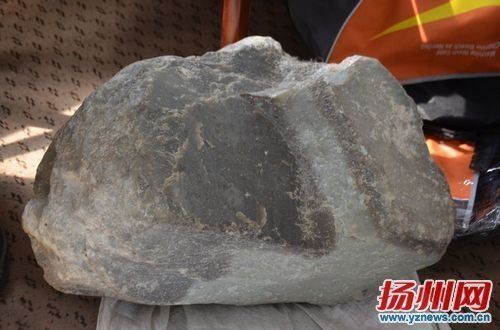 在揚州玉石料市場的玉緣賓館內,記者見到了幾塊來自新疆的和田料。據北京和諧玉器周瑋介紹,3月29日這批和田料將在揚州國展中心與揚州市民見面,其中一塊外皮青黑色的新疆和田籽料市場底價220萬。