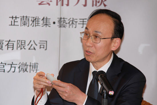 岳峰(喜朝),中國國家博物館鑒定中心主任,研究館員。擅長書畫、玉器、古陶瓷的鑒定評估。曾任新疆文物商店總經理、新疆文物局局長、新疆文物鑒定咨詢委員會主任、新疆收藏家協會會長。