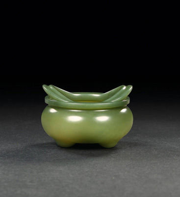 中國玉雕大師蔣喜作品 青玉琴爐 5.1×5.0×3.4cm 無底價