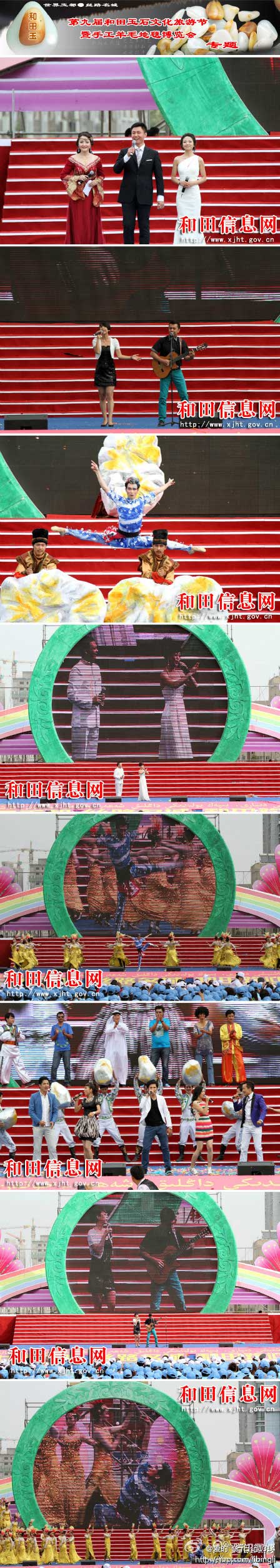 今天的開幕式文藝演出由新疆德威龍文化傳播公司具體承辦,北京市、天津市和安徽省協助邀請了國內多位知名藝術家和疆內頂級舞蹈家、歌唱家以及新疆著名舞蹈團隊聯合參加演出。同時,把本地大型文藝節目融入其中。整臺演出主題鮮明、題材豐富、形式多樣,將以豐富的舞臺魅力展示和田經濟社會發展的成果以及新疆歌舞風采。
