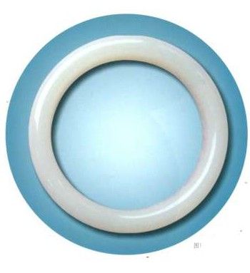 玻璃是非結晶態物質,因而不具有結晶礦物那種固定的燃點。制作玻璃的原料或廢棄玻璃被加熱時的變化:首先是逐漸變軟,然后漸漸變成黏稠狀的熔體,最后變成真正具有流動性的液體。這種液體澆鑄于各種模范之中,冷卻后便成為新的玻璃材料或玻璃器具。因此可以說,玻璃在固態和液態之間沒有明顯的界線,它是凝固的液態物相,所以美國材料測試學會(ASTM)對玻璃下的定義是:玻璃是一種從熔融狀態下冷卻而未結晶的無機物質。黏稠狀液體冷卻成仿制玉器的玻璃材料,絕大多數都會留下氣泡,以及流動紋構造或不規則的交錯色帶。尤其是氣泡,即便是用現代制作玻璃的工藝技術,制作出來的玻璃出現的氣泡雖然很少、很小,不明顯到很難觀察得到,由于仿玉石玻璃沒有必要達到徹底消除氣泡,可以通過降低透明度的方法將這極少的氣泡隱蔽起來,因此如果觀測的方法不恰當,更難用肉眼看到這些稀少的小氣泡。玻璃中產生的氣泡形狀以球形最為長見,其他形狀還有橢圓形、拉長橢圓形,甚至拉長至管狀。雖然在天然玉石中僅有極少數瑪瑙水膽中含有氣泡,由于彼此之間很容易區分,所以氣泡雖然很難以看得到,但它仍然不失為鑒定玻璃的有力依據之一。圖2為仿和田玉手鐲玻璃板材套取手鐲后剩余的邊角材料;圖3為清晰可見的玻璃板材模型底部隔離網紋。
