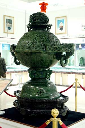 由瑪納斯碧玉鏤雕而成的香熏,重量達(dá)1000余公斤