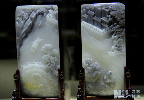 這是獲金獎的玉雕作品《蘇州印象》(11月24日攝)。