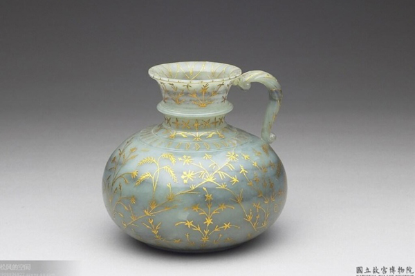 清 青玉嵌金絲單把大罐