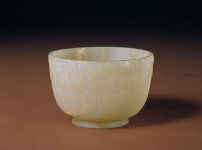明-白玉花形杯,高3.2cm、口徑7.3cm