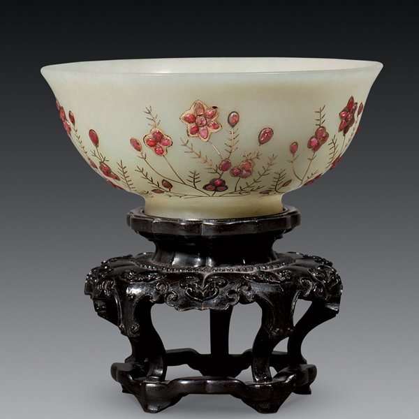 薄胎玉器很早便已出現在古代器皿玉器中,唐代玉蓮瓣紋杯、明代玉花形杯等就是其中的精品之作。然而一直到了清代,充分吸收了痕都斯坦玉的技術特點后,薄胎玉器才開始日漸興盛,最終得以在玉雕器皿的雕琢中占有一席之地。因為胎體輕薄的緣故,薄胎工藝所雕琢出的玉器不但能使原本沉重的玉變得輕巧,還能讓玉色減退青色返白,倍顯玉質的均勻、透度之美。