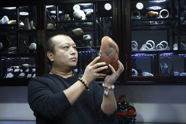 和田玉胚說,采玉也講究緣分。玉龍喀什河的記憶讓他對玉多了一份崇敬,“得之不易的玉料每一塊都必須精雕細琢。”許祐瑋說。