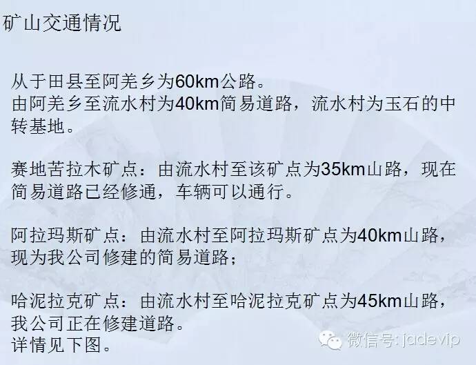 和田東山礦業有限責任公司現擁有6個和田玉礦采礦權,正在辦理的采礦權3個;公司目前正在往3個玉石礦點修建礦山簡易道路;公司玉石庫存量150多噸,大多品質上乘。