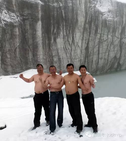 2014年6月22日,玉友朱達義在微信朋友圈曬出上圖并寫道:“4600米海拔的和田玉源頭,四個(比我大的)男人用這樣的方式表達他們歷經困難后的喜悅,可想而知他們有多興奮·····這衣服值得脫,一輩子的財富,不會磨滅的驕傲。”