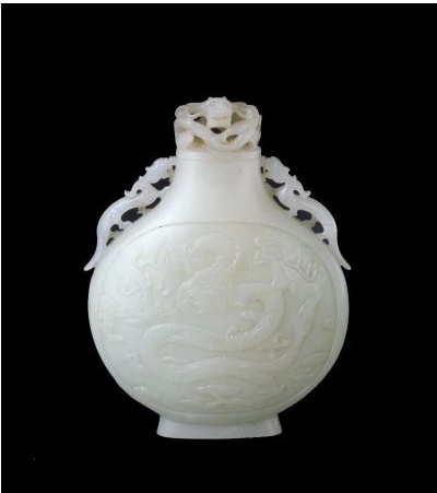 清 白玉云龍紋帶蓋寶月瓶