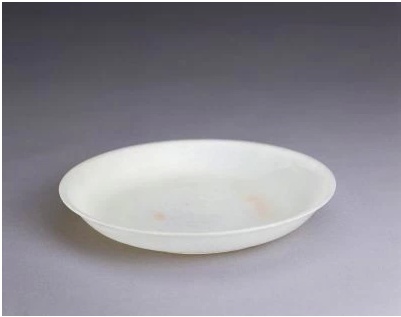 盤為青玉質,玉質較為細膩。圓形,撇口,矮圈足,通體光素無紋,打磨較為精細。此盤為清宮舊藏,原置于養心殿,可能為皇帝御用之物。
