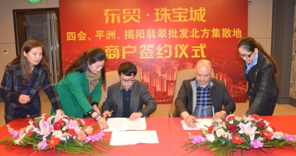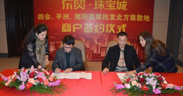 11月4日東貿珠寶城同時獲得在業界極具影響力和超大規模的玉上皇珠寶、玉珮名家珠寶、傳家寶玉器、萬利玉器等數十家玉器珠寶商戶的簽約入駐;11月5日,四會翡翠協會會長、媽祖玉器董事長鄭文水先生攜四會翡翠商團集中進駐東貿珠寶城,與東貿珠寶城舉行了盛大的集中簽約儀式。