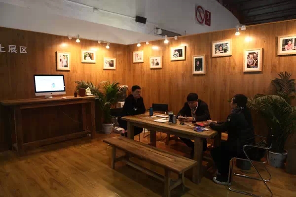 一組三件青花水墨牌,天然的水墨加上用心的雕刻,似水的云,如云的水在山間流淌,很有情調,很值得慢慢體味,展臺上隨手撒下的幾片銀杏葉,帶著秋天的顏色,體現出作者非常用心。