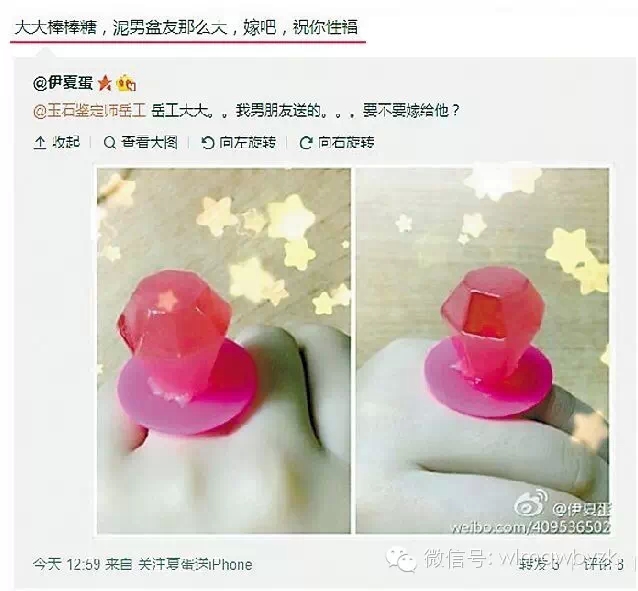 讓人意想不到的是,在岳工悄然走紅的同時,竟然有人以此為契機,在網上用“玉石鑒定師岳工”的名稱注冊新浪微博,注冊名“岳大炮”冒充“岳工”,為網友鑒定玉石,給真正的岳工添了不少困惑。 據記者了解,2014年6月,此博主還在騰訊微信平臺注冊了以“玉石鑒定師岳工”為名的微信公眾號,在微信上繼續做“鑒定”,看來此“岳工”已把冒充岳蘊輝“岳工”當成了自己的事業,不斷進行“市場開拓”。