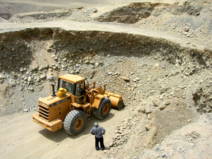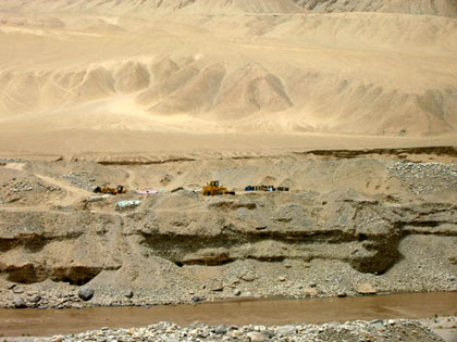 白玉河是季節性河流,每年夏季昆侖雪化,形成洪水沖向低處,歷史上幾經改道,現在有的故道已是農田,那是不準挖掘的,在現有河道附近的古河床,綿延100多公里,有數百臺挖掘機和推土機在緊張施工,趕在今年洪水到來之前,盡可能多干一些。在每一施工地段,掘進深度直達河床底,即歷經千萬年積累起來,厚達3至10米左右的卵石層被翻了一遍,再經過細心篩選(據我所見,不但小如花生米大小的籽料不會放過,連稍有特色的奇石也被收起),整個河床就象一個廣闊的基建施工工地.付出是巨大的人財物力,收獲完全靠運氣,潛藏的籽料恰好在你標中的地段,可以收回成本或賺錢,否則就虧損甚至于血本無歸.