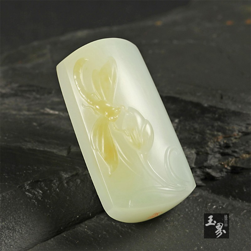 黃玉掛件-蝶舞荷香(玉界臻品)