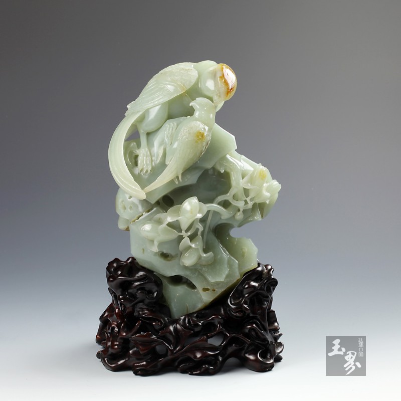 其實,在世界藝術(shù)寶庫中,花鳥作為獨立的表現(xiàn)對象是中國首創(chuàng)的,而且至今長盛不衰。審美的大境界,訴求的大意象,借喻的精細化決定著中華文化的體驗走向。人的精神和自然的物質(zhì)往往決定著文人傾訴的傾向,那種四季花朵和的四時鳥蟲開開落落、生生世世的常態(tài),對應(yīng)著人們對生命剎那燦爛、剎時敗落的無奈,讓人時時快樂、感嘆、珍惜和回味。唯美花鳥玉雕奢想讓這個永遠沒有答案的問號停止詢問,讓唯美情趣一次一次隨意綻放出絢麗花朵的,讓唯美人生伴隨每個人每一天都充滿著快樂的心境……這就是我思,我愿的夢想。