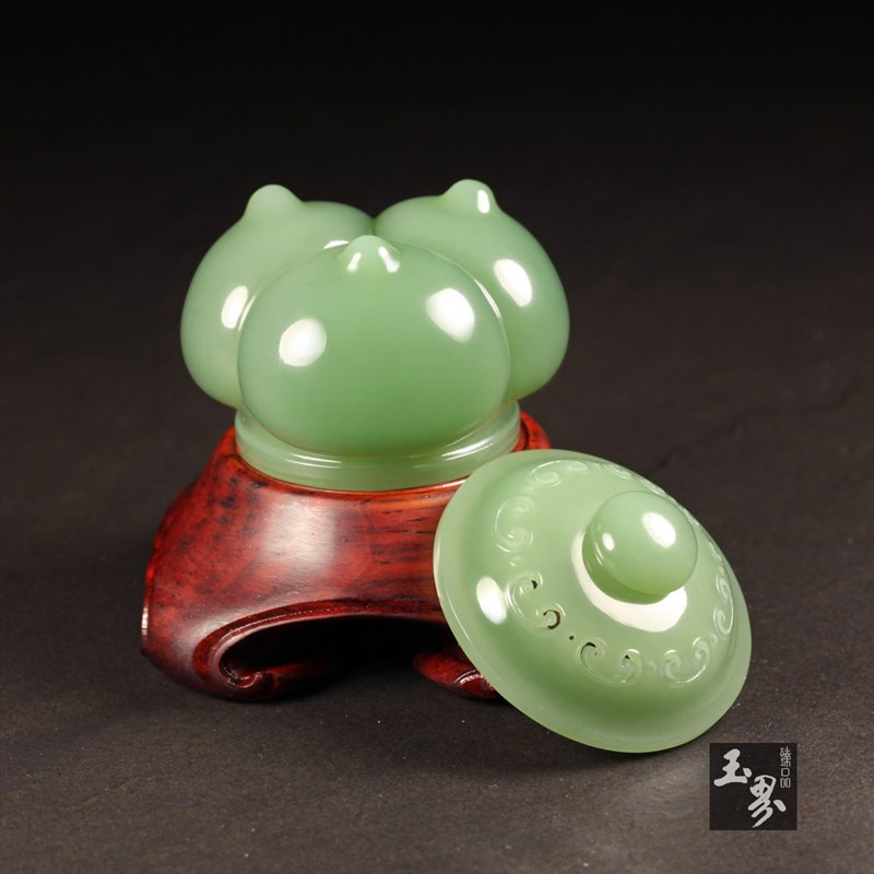 現如今,大多數玉雕藏家與玩家都喜歡隨身佩戴、攜帶藏品,以供隨時把玩欣賞,當代許多玉雕大師,也因此設計創作了許多小型玉雕器皿,這些器皿往往造型精致、盈手而握,其工藝精湛處更不必細說。