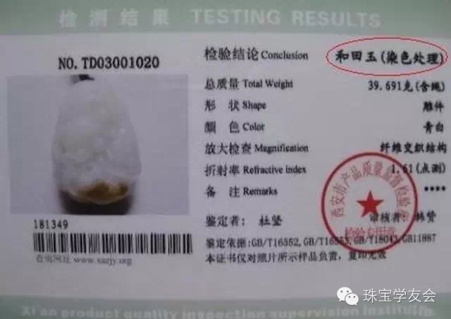 雖然和田玉皮色是真是假,道理上是能出證書的,但仍有兩點原因使得執行的過程變的異常困難:一是國家目前尚無和田玉染色鑒定的相關判定標準,也無行之有效的專用檢測方法。二是行業內也有行業內的規則:“但當染色面積很小、淺時則可以不注明”。