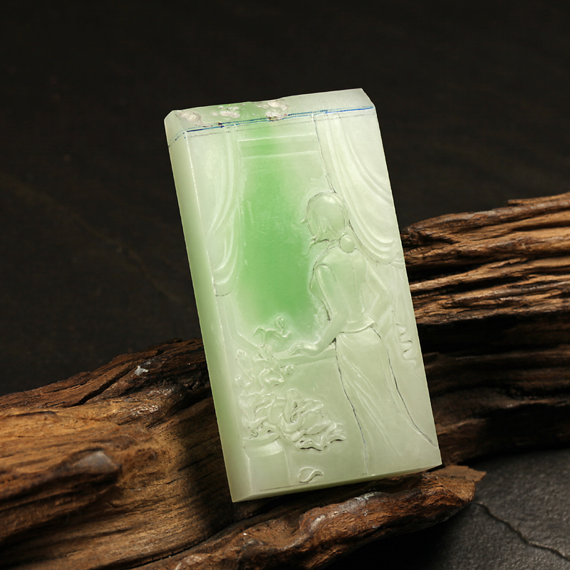 雖然輪廓、布局大體相同,但經過了精細雕琢與打磨拋光之后的成品,是不是仍然讓你眼前一亮了呢?那一抹深幽的翠色,即使不假雕琢,也能讓人在瞬間憶起春日枝頭那難描難畫、不可言說的菁菁新綠。