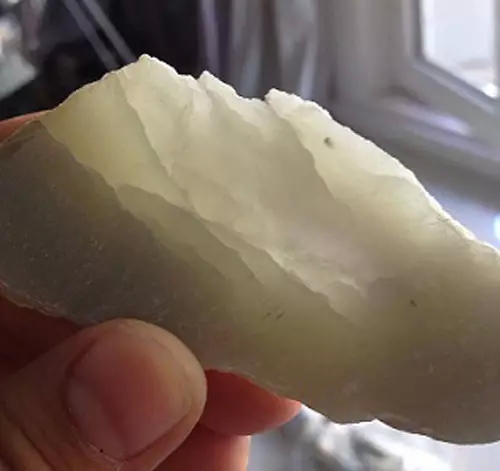圖說:“性大”的玉料在加工中出現的崩口、起層現象
