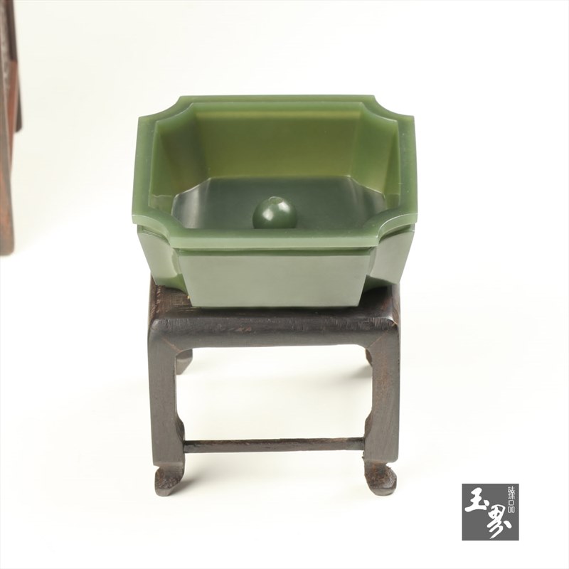 作品玉質(zhì)溫潤細(xì)膩、凝脂光潔,器型古樸端莊又小巧、線條則干凈流暢,全無修飾,卻充分展現(xiàn)了素面器皿光潔無暇的本色美。底部落有揚(yáng)州工藝美術(shù)大師陳大軍“大軍”款識(shí)。