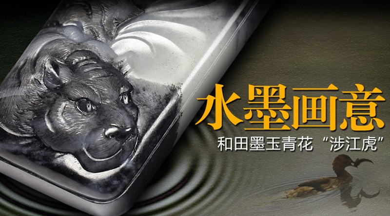 正因如此,幾乎所有的中國(guó)藝術(shù)作品中,都少不了虎的身影,虎的形象,也因而愈發(fā)豐富多樣。而我們今天看到的這件墨玉子料牌-涉江虎,其創(chuàng)作靈感正是來源于國(guó)畫“涉江”。