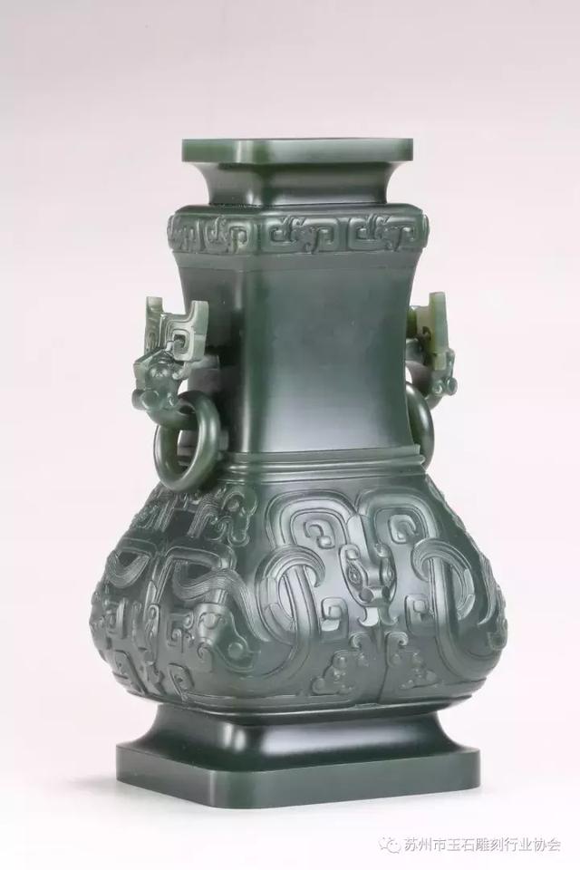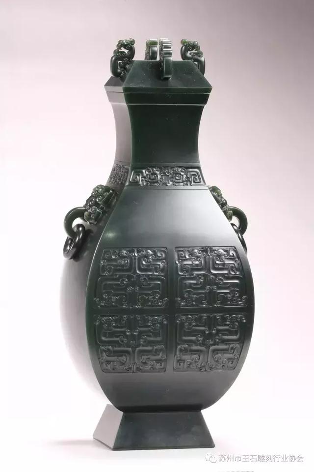 朱玉峰 朱玉林 青海青玉《交紋龍方壺》