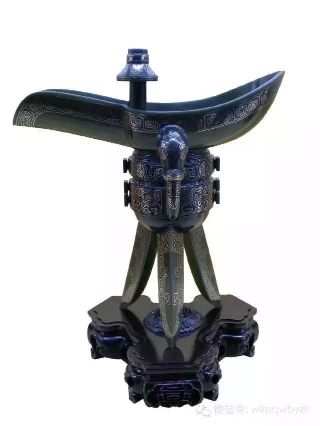 金銀錯嵌寶石工藝制作難度極大,工藝要求極精,圖案線條要流暢、粗細一致、開槽準確,否則金絲無法嵌入。即使勉強嵌入也不牢固,尤其是金片、金絲相組合圖案及紋飾繁密,弧線集中圖案,開槽精度要求更為嚴格,制作難度更大。因為玉器表面開槽并非刀具所致,而是小如米粒的磨輪在飛速旋轉下刻成,若非深厚功底實難得心應手。金銀錯工藝的金、銀絲全部是打、壓嵌入器物表面,不能用任何粘貼劑,所以既要圖案線條流暢,又要開槽精度準確,鑲嵌平整,對絲無痕。加工制作的難度可想而知。