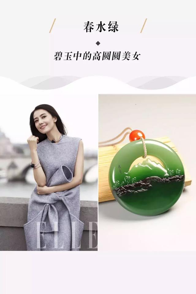 (二)春水綠(行內稱白加綠)更加的水透,富有層次的變化之美,既有引人的艷綠,又多了變化過度之色,在我看來,其氣質就像高圓圓,美麗又多了內涵!這類材料創作出一些文藝氣息的作品,俊男美女們一看就會喜歡上了吧?像這類作品創作也就必須要有更深的內涵才能讀懂它了!