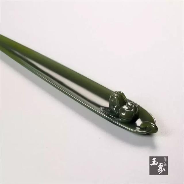 ▲ 青玉香插-竹葉蛙趣 | 玉器編號:163194